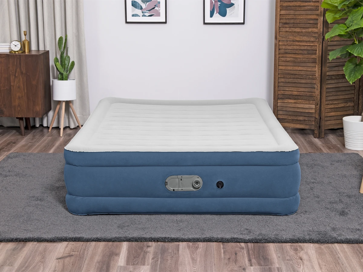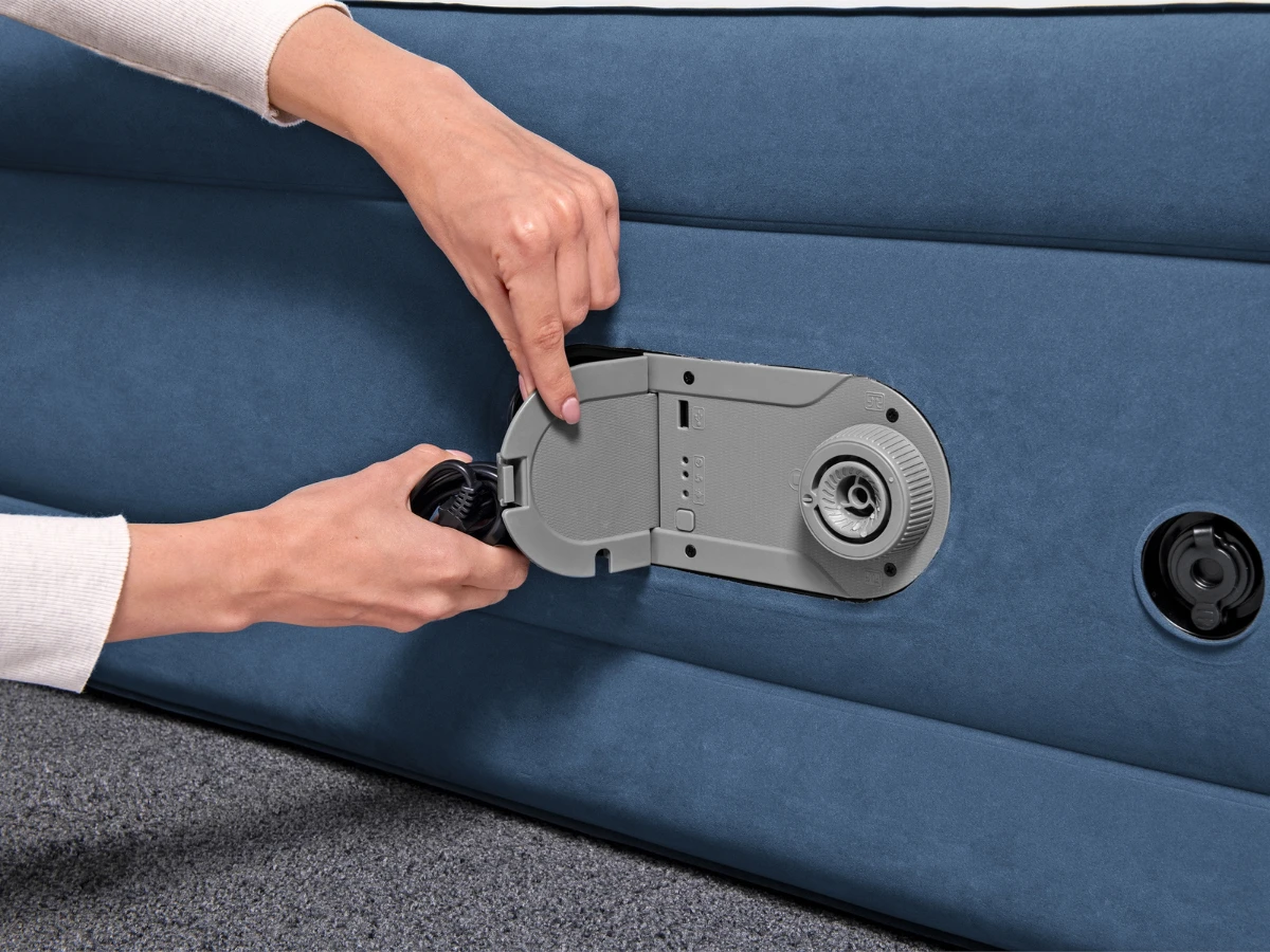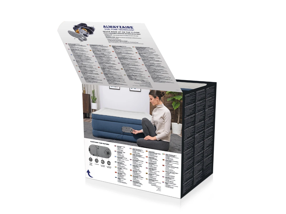 Het Alwayzaire systeem van het Bestway AlwaysAire luchtbed heeft twee pompen waardoor jouw luchtbed de hele nacht de gewenste hardheid heeft. Binnen 4 minuten blaas je met de eerste pomp het luchtbed op. Daarna let de tweede pomp op de gewenste hardheid en behoudt deze. Zo wordt je ‘s ochtends wakker niet wakker op de grond en is bijpompen niet nodig, wel zo fijn toch?
