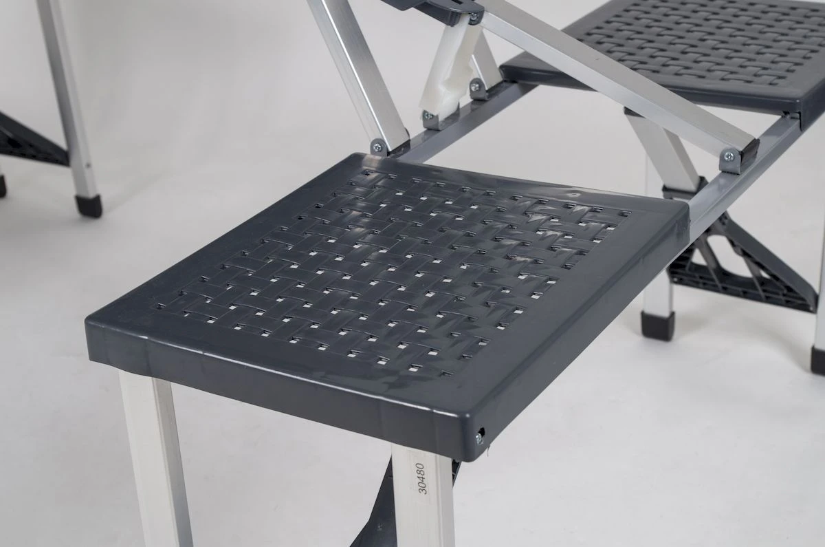 De gehele picknicktafel is inklapbaar tot het formaat van een koffer van 35 x 86 x 11 cm. Top kampeerformaat dus! Daarnaast weegt de hele tafel maar 6,45 kg waardoor je hem eenvoudig meeneemt als je tijdens je vakantie naar verschillende locaties reist. Ook berg je de picknicktafel eenvoudig op, waardoor je veel ruimte bespaart. Dit betekent dat je extra veel ruimte over hebt voor andere spullen die je graag mee wil nemen.