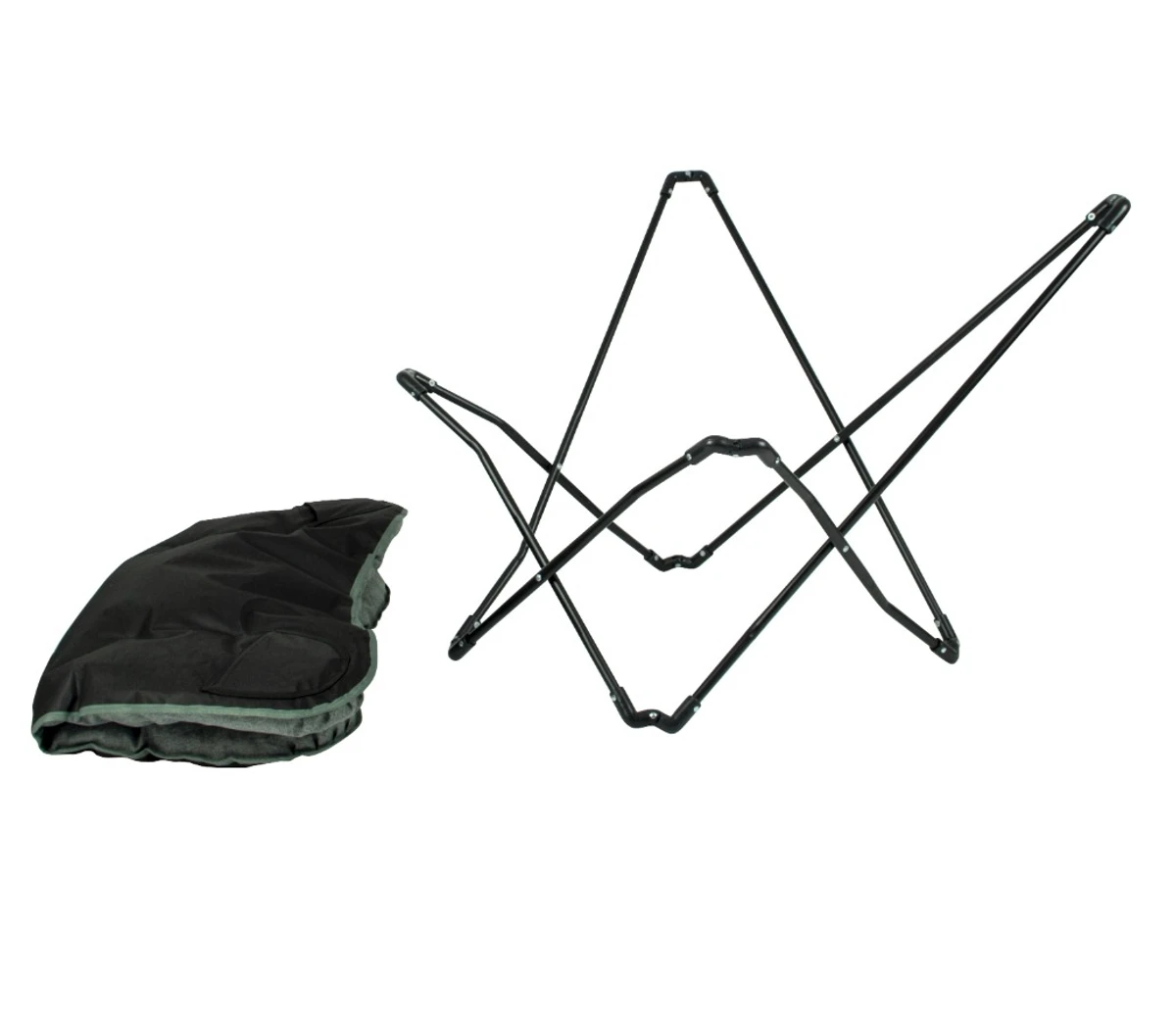 Het frame van de vlinderstoel klap je makkelijk in en uit. De zitting schuif je simpel van de stoel af en vouw je met hetzelfde gemak weer op. In totaal weegt de stoel 3,5 kg en je krijgt er ook nog een handige draagtas bij. Deze campingstoel wordt geleverd in een langwerpige verpakking, goed om rekening mee te houden!