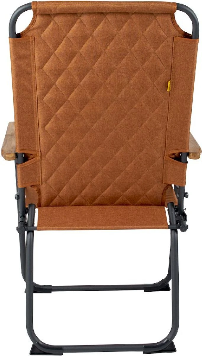 De stoel is uitgevoerd met een zwart aluminium frame en is voorzien van luxe Cationic bekleding. De houten armleggers, het zwarte frame en de luxe bekleding zorgen voor een stoer design in combinatie met ultiem comfort. De stoel weegt slechts 2,5 kg kan een maximaal gewicht van 110 kg aan.