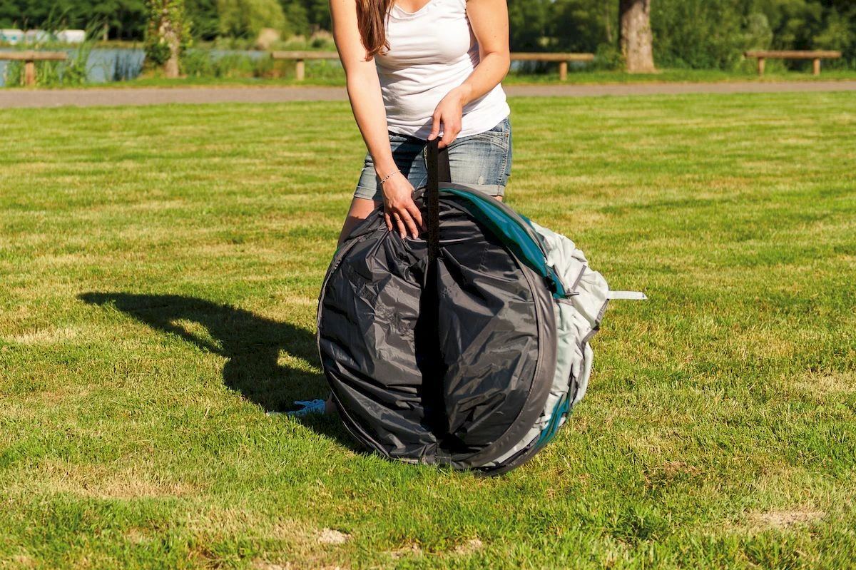 De Coleman Galiano is ontzettend snel gebruiksklaar en kan al binnen enkele minuten opgezet worden. Haal de pop up tent uit zijn verpakking en gooi hem op. De tent ontvouwt zich en hierna hoef je de tent alleen nog af te spannen en vast te zetten met de meegeleverde haringen. Zo ben je binnen no-time klaar met het opzetten van de tent en kun je direct genieten van je festival of vakantie. De tent weegt slechts 3,3 kg en is ook nog eens compact mee te nemen. De Coleman Galiano 4 heeft een oprolbaar dak, waarmee je de gehele bovenzijde van de tent kunt openen. De oprolbare gaaspanelen in het dak zorgen tijdens warme nachten voor extra ventilatie. Je kunt ze natuurlijk ook oprollen om ‘s nachts te genieten van een mooie sterrenhemel.
