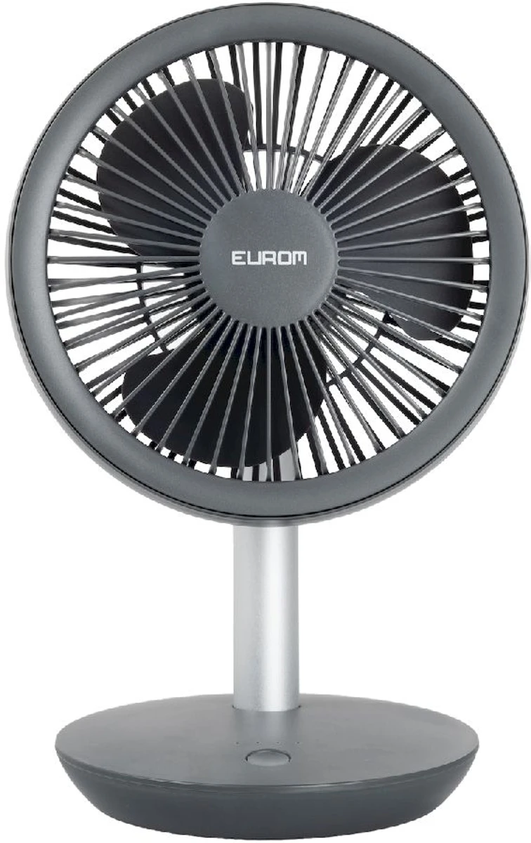 Deze tafelventilator van Eurom werkt op batterijen. Hierdoor heb je alle vrijheid om de ventilator daar te plaatsen waar jij het wat koeler wilt hebben. Je bent namelijk niet meer afhankelijk van een stopcontact in de buurt. Een ideale ventilator voor op de camping dus! Zo houd je ‘s middags de voortent lekker koel en ‘s nachts de slaapkamer. Draadloos gaat de accu tussen de 4 en 15 uur mee, afhankelijk van op welke stand je de ventilator hebt staan. Is de accu van de ventilator leeg? Dan laad je deze eenvoudig weer op met de meegeleverde USB oplaadkabel.