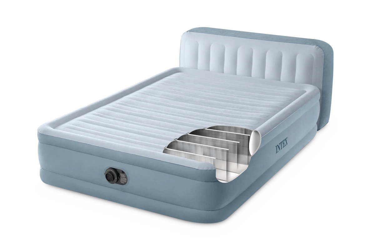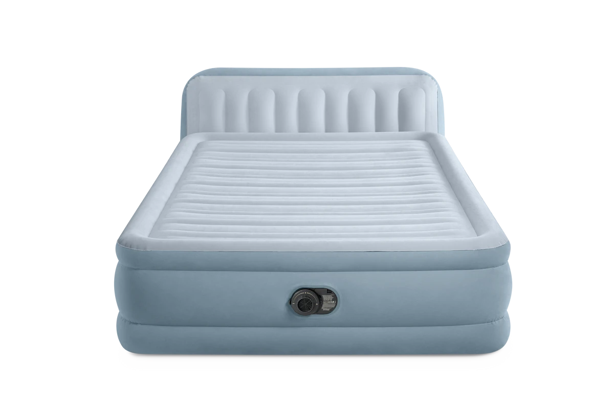 Op zoek naar nét dat beetje extra luxe voor je logeerpartij of kampeertrip? Dan is het Intex Plush Headboard Queensize luchtbed echt wat voor jou. Dankzij het ingebouwde hoofdeinde zit je lekker rechtop als je nog even wilt lezen of tv-kijken. En nóg handiger: je kussen blijft gewoon liggen waar ‘ie hoort wel zo fijn.