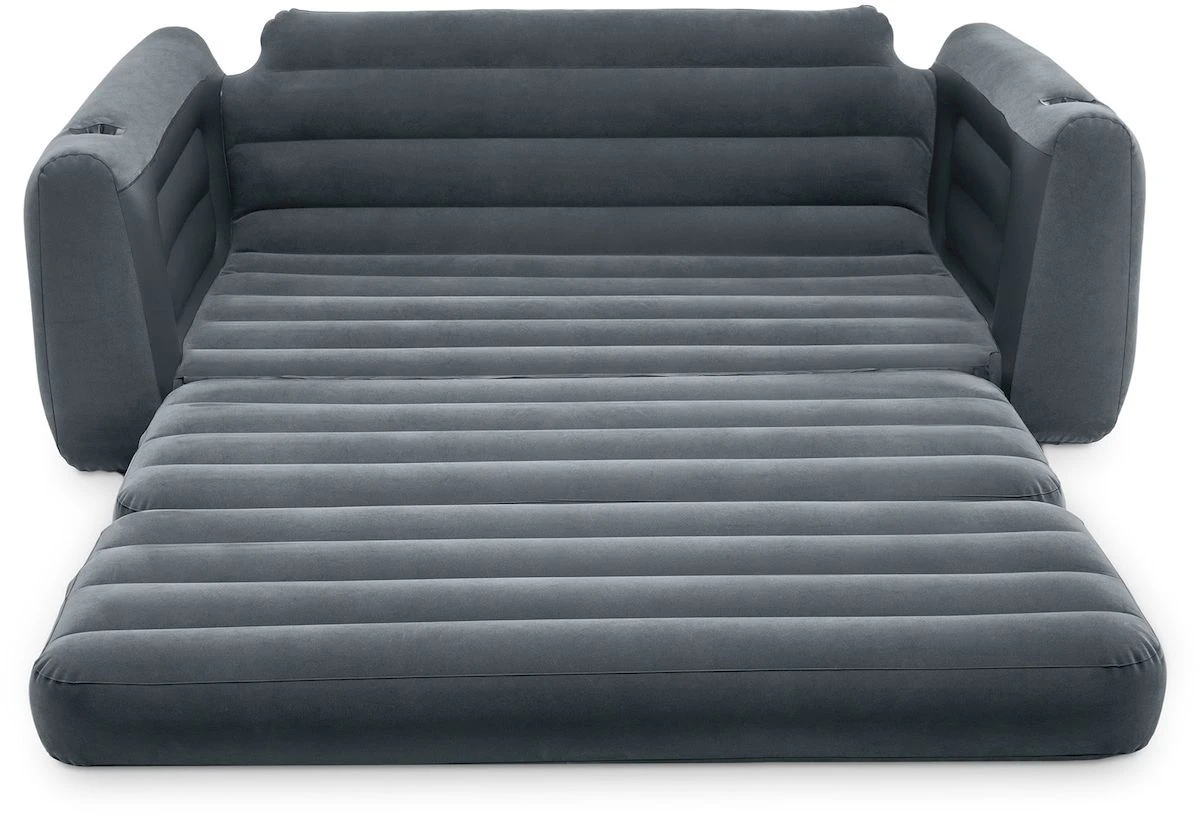 Ben je een luxe kampeerder? Of zit je middenin een verhuizing? Dan is de Intex Pull-Out uitklapbare opblaasbank wellicht wat jij nodig hebt. Je gebruikt deze opblaasbare bank natuurlijk als bank, maar ook als luchtbed. De rugzitting is namelijk uitklapbaar! De bank is door de afmeting van 203 x 224 x 66 cm geschikt voor 2 personen.