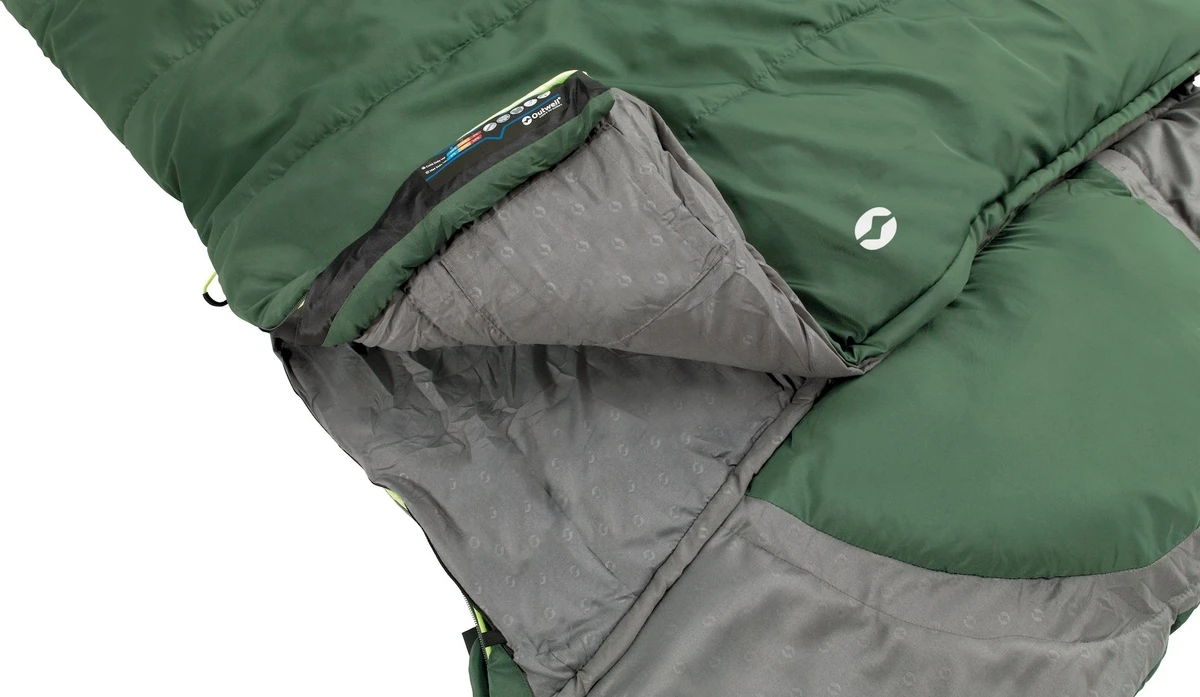 Met warme temperaturen lekker koel liggen en in de frisse periode zonder koude tenen in slaap vallen? Dan is de Outwell Contour Lux XL slaapzak echt iets voor jou. Deze extra grote slaapzak heeft een comforttemperatuur van 3 ºC. De binnenkant is gemaakt van isofill en de buitenkant van microfiber waardoor hij perfect is voor zowel de lente als de herfst. Ideaal voor de kampeerliefhebber dus! Door zijn extra lengte en breedte passen ook de langere slapers van 200 cm of groter in deze slaapzak. De Outwell Contour Lux XL slaapzak weegt maar 1.950 gram. Zo neem je ‘m overal makkelijk mee naartoe!