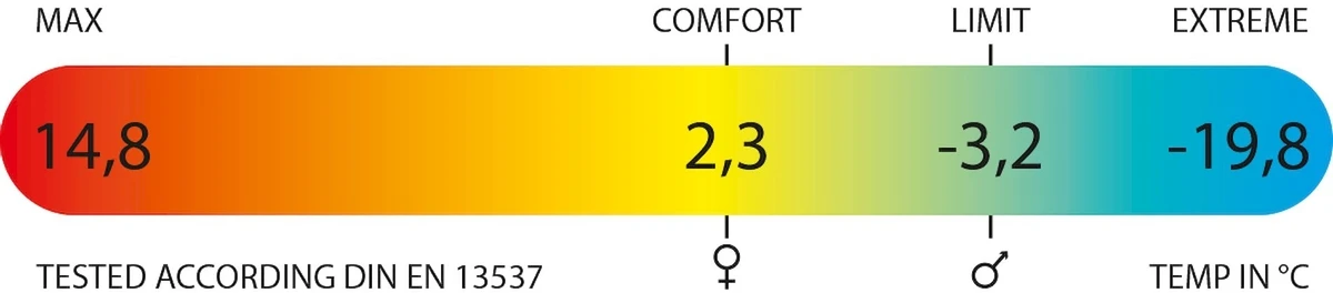 Hoewel de Polydaun Stormvogel slaapzak het meest geschikt is voor in de zomer en lente. Zorgt hij er ook voor dat je een goede nachtrust hebt in de koudere maanden. Met een comforttemperatuur van 1 °C valt deze slaapzak namelijk in comfortniveau goud! Dit betekent dat zelfs wanneer het 1 °C is, je nog steeds heerlijk slaapt. Slaap je in een temperatuur kouder dan -1,2 °C? Dan isoleert de slaapzak niet genoeg meer en merk je dat het kouder in de slaapzak wordt.
