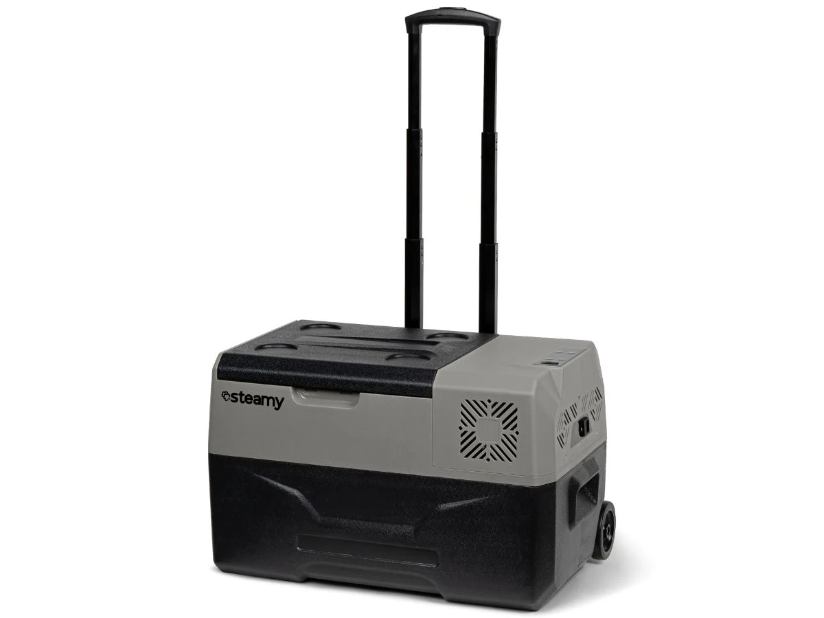 De Steamy-E SECCX30 compressor koelbox beschikt over twee handige wielen en een uitschuifbaar handvat. Deze wielen en handvat zitten aan de achterkant van de koelbox in tegenstelling tot veel koelboxen waar ze aan de zijkant zitten. Hierdoor wordt het gewicht beter verdeeld en hoef jij je geen zorgen te maken dat de koelbox omvalt tijdens het verplaatsen. Zo wordt het verplaatsen van de koelbox voor jou weer net een stukje makkelijker!