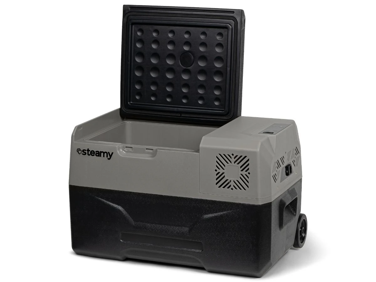 Deze Steamy-E compressor koelbox verandert in een handomdraai van koelbox naar vriezer. En dat zonder koelelementen! Je sluit de koelbox aan en stelt heel makkelijk de gewenste temperatuur in op het digitale lcd-paneel. Van koelen op 20°C tot vriezen op -20°C, deze compressor koelbox doet het allemaal!