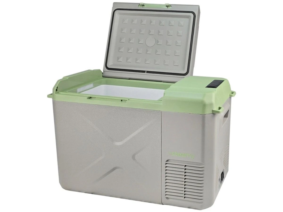 Deze Steamy-E compressor koelbox verandert in een handomdraai van koelbox naar vriezer. En dat zonder koelelementen! Je sluit de koelbox aan op stroom en stelt heel makkelijk de gewenste temperatuur in op het digitale lcd-paneel of via de Steamy app. Van koelen op 20°C tot vriezen op -20°C, deze compressor koelbox doet het allemaal!