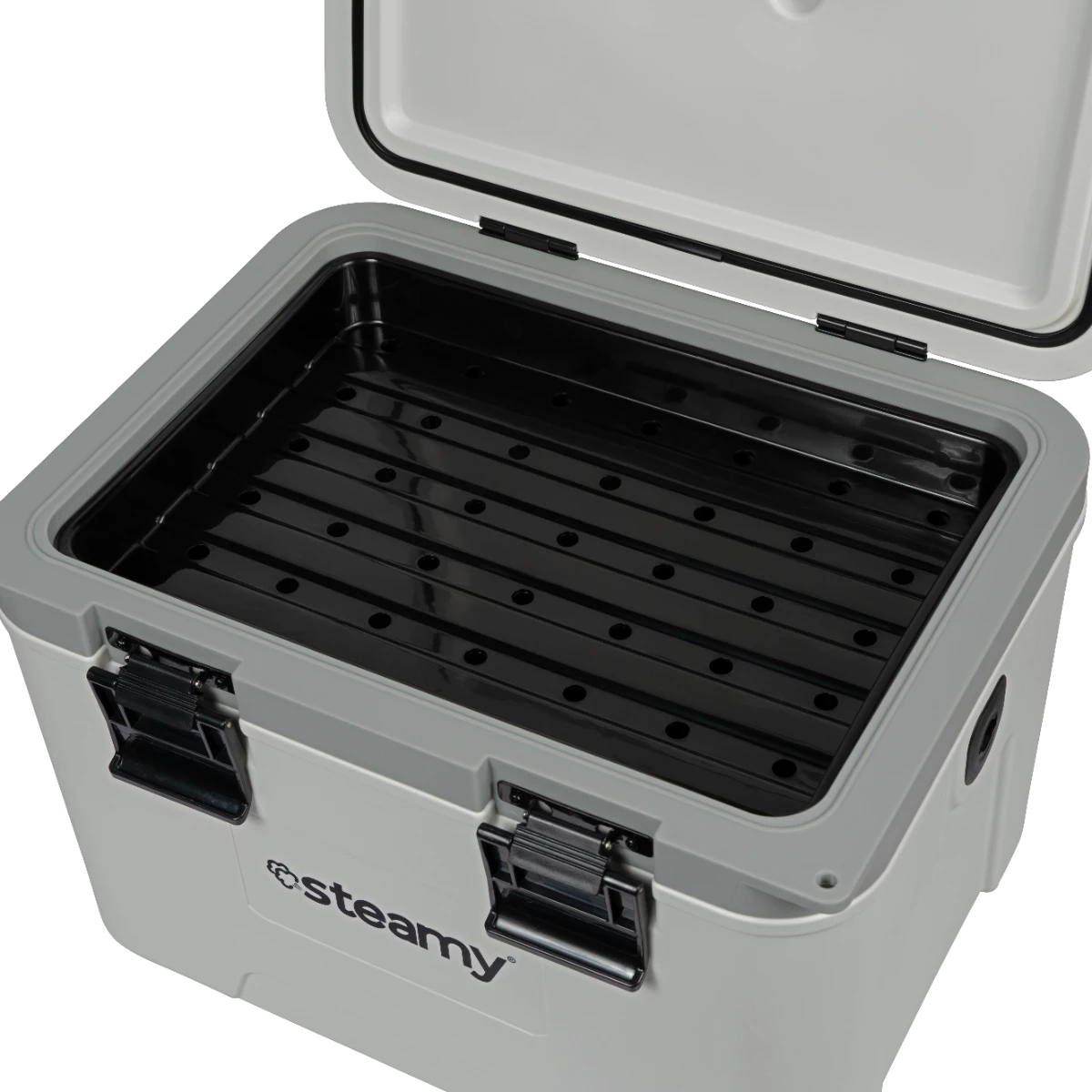 Deze koelbox is speciaal gemaakt voor maritiem gebruik. Dit betekent dat hij specifiek bedoeld is om op zee te gebruiken. De hoogwaardige schuimisolatie rondom zorgt ervoor dat de koelbox en de inhoud extra beveiligd is. Daarnaast wordt de koelbox geleverd met een divider en inlegtray om ‘m naar wens in te delen. Zo blijft jouw eten en drinken geordend, ook op zee.