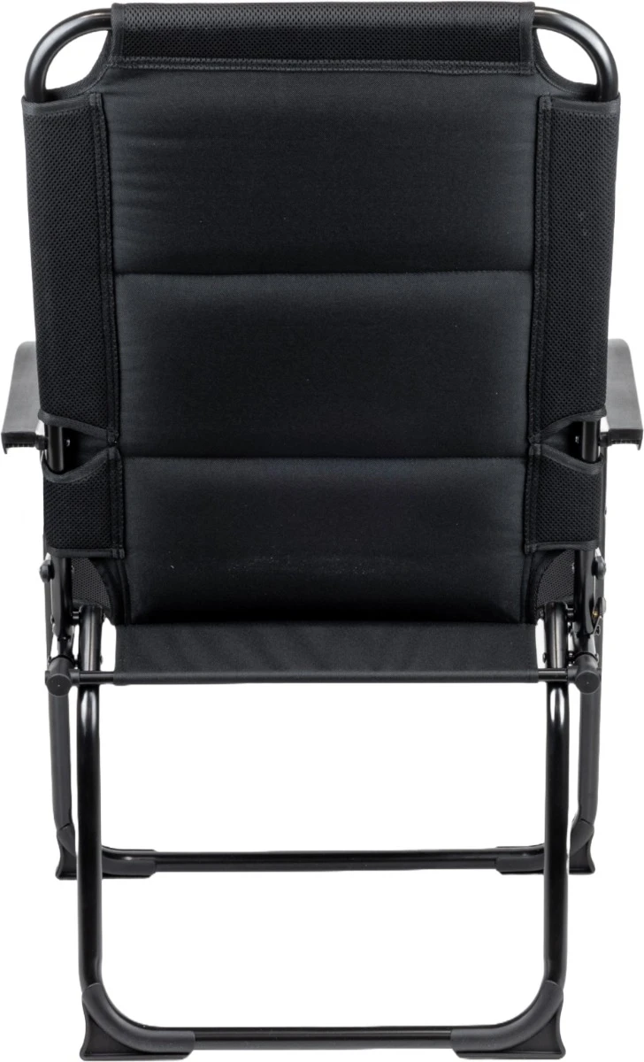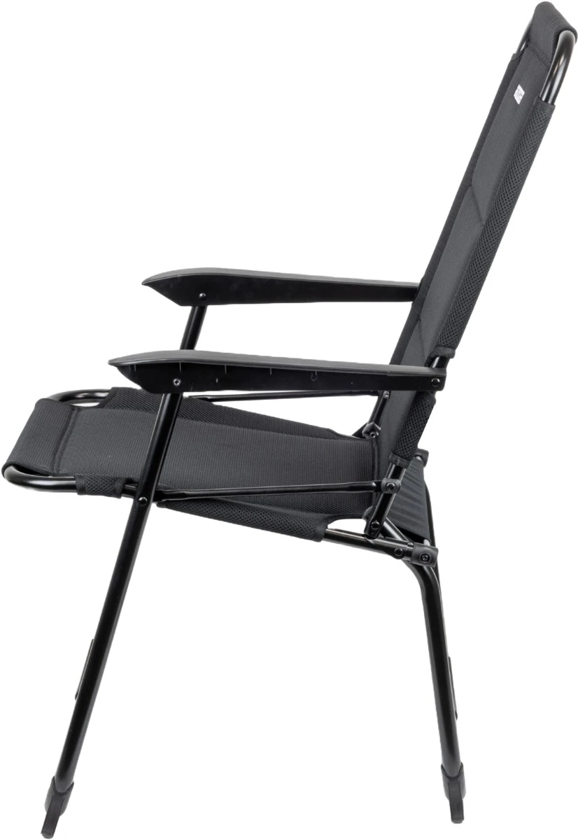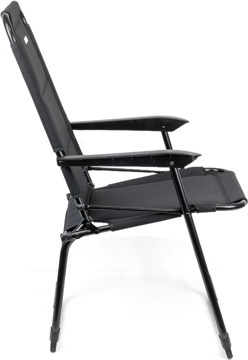 De stevigheid van deze klapstoel is vooral te danken aan het zwart gecoate aluminium frame met een diameter van 22 millimeter. Een echt voordeel ten opzichte van een normale campingstoel. Door een magnetische clip aan de zijkant van het frame ga je het zomaar inklappen van de stoel tegen. Een extra veiligheid wanneer je op de stoel gaat zitten wanneer de poten niet goed zijn uitgeklapt.