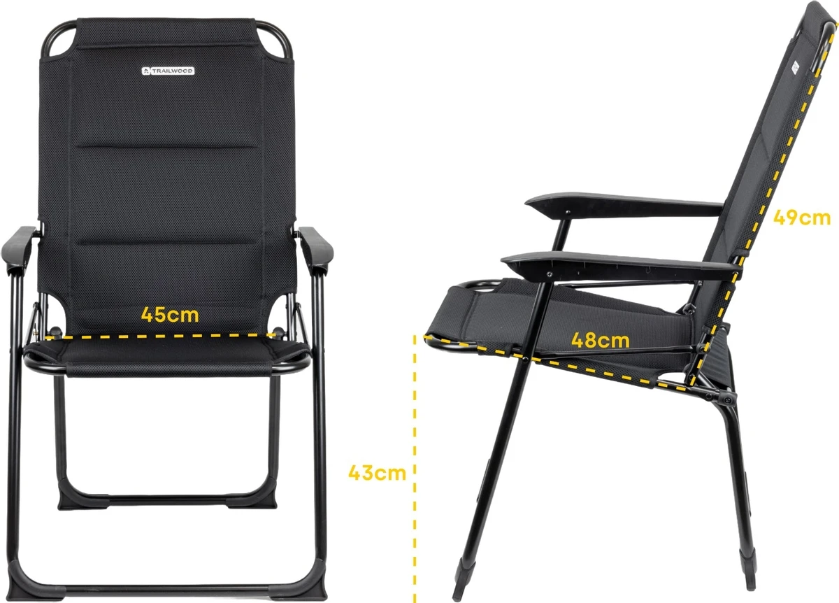 De Trailwood Crafter klapstoel is de perfecte toevoeging aan de uitrusting van iedere kampeerliefhebber. Deze klapstoel zet je makkelijk op en klap je ook weer simpel in. Hoewel de Trailwood Crafter niet verstelbaar is, is het toch een uitstekende campingstoel dankzij een comfortabele zithoogte van 43 cm, een royale zitbreedte van 45 cm en een ruglengte van 49 cm. Daarnaast heeft deze klapstoel met aluminium frame een maximale belasting van 120 kg en toch slechts een gewicht van 2,9 kg, stevig en makkelijk draagbaar dus.